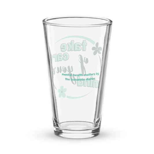 Take Care of Your Mind Pint Glass - Mental Health Matters by The Banannie Diaries - Volume: 16 oz. (473 ml), Glassware, Houseware